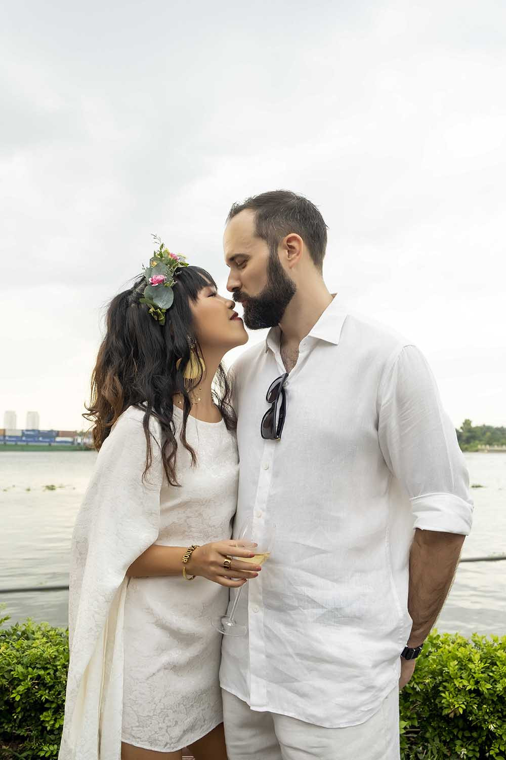 Em gái Hà Anh tình tứ bên bạn trai ngoại quốc ở buổi tiệc sau show diễn.