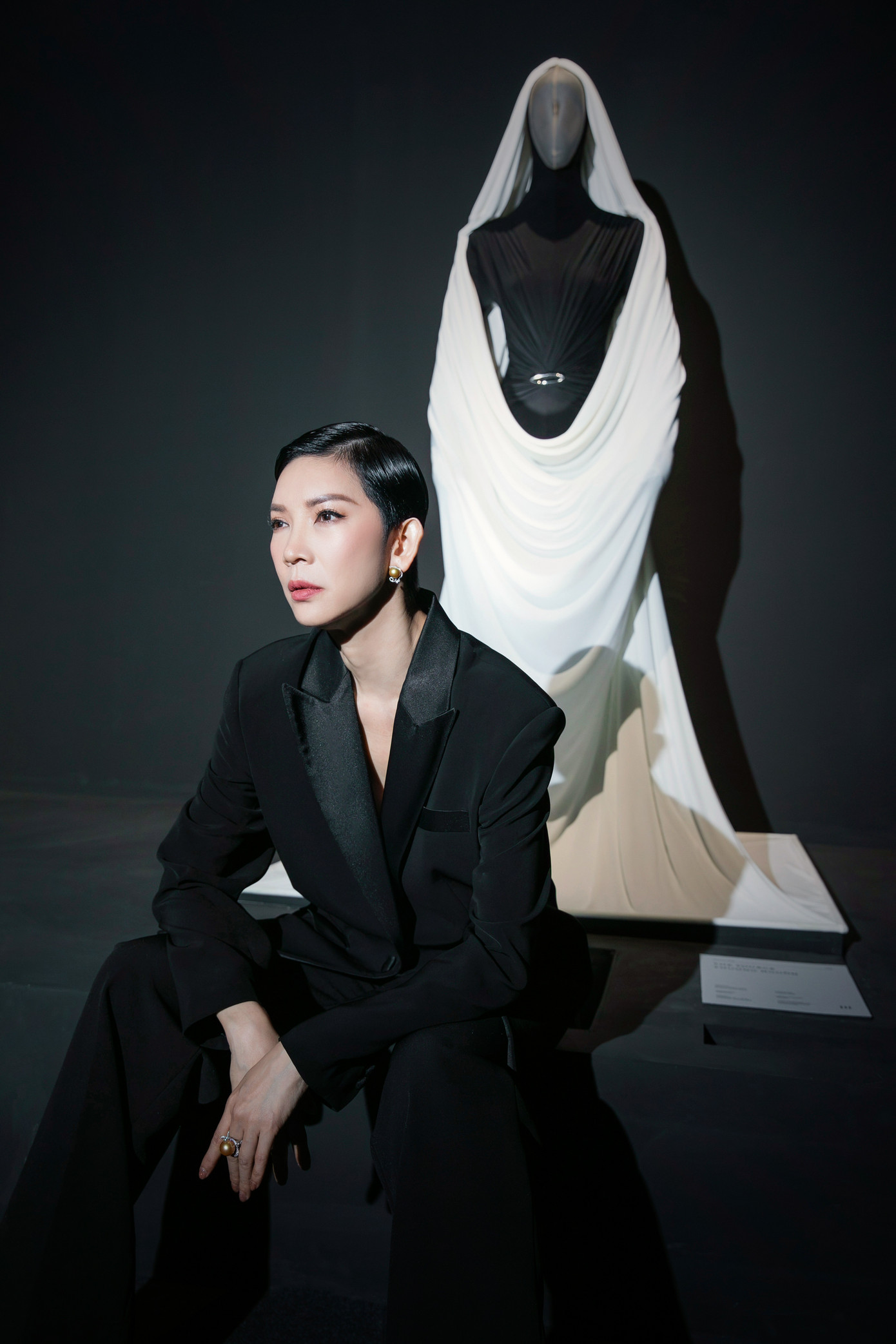 Ca sĩ MIN xuất hiện đầy cuốn hút trong thiết kế “Flux dress”, với chi tiết xếp nếp, như một tuyên ngôn về sự cân bằng và sức mạnh tiềm ẩn.
