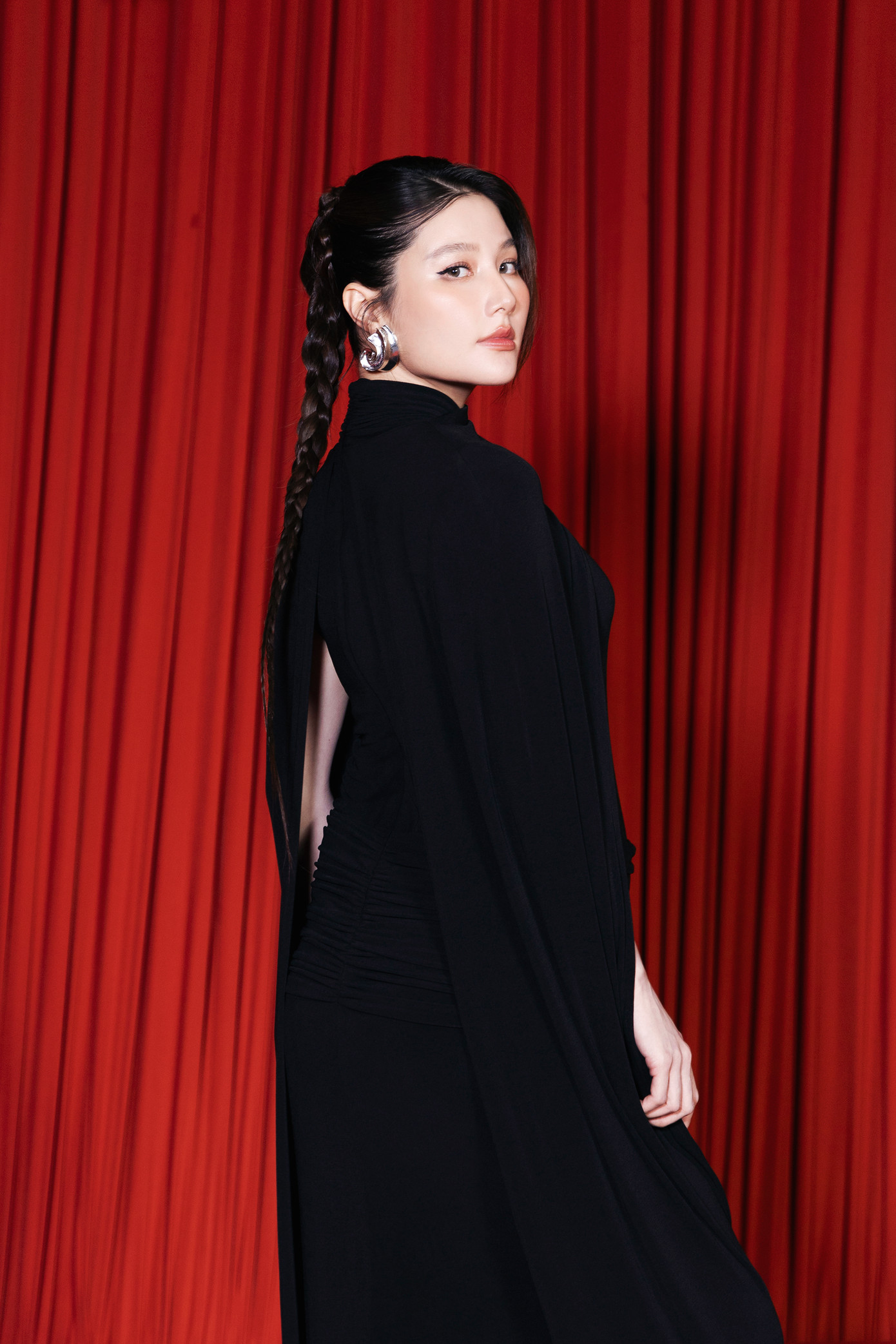 Á hậu Thảo Nhi Lê lựa chọn thiết kế “Celestial dress” với chi tiết xếp nếp, gợi nhớ hình tượng vị thần trong hình hài thường nhật nhưng đầy nội lực.