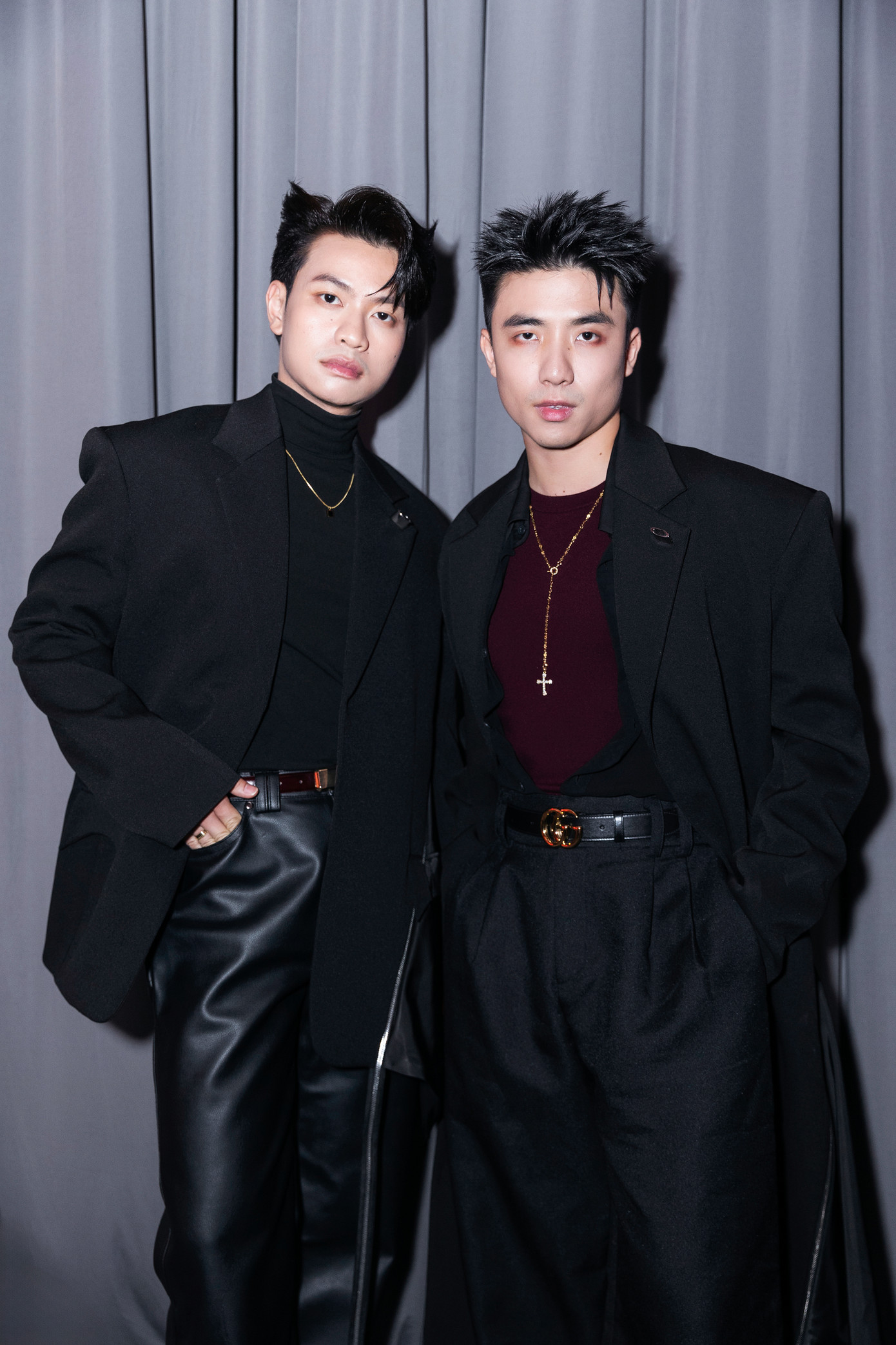 Cặp đôi Ninh Anh Bùi và Nguyễn Tùng Dương trở thành tâm điểm chú ý khi diện trang phục với chi tiết hình khối mạnh mẽ, mang đậm hơi thở đương đại.