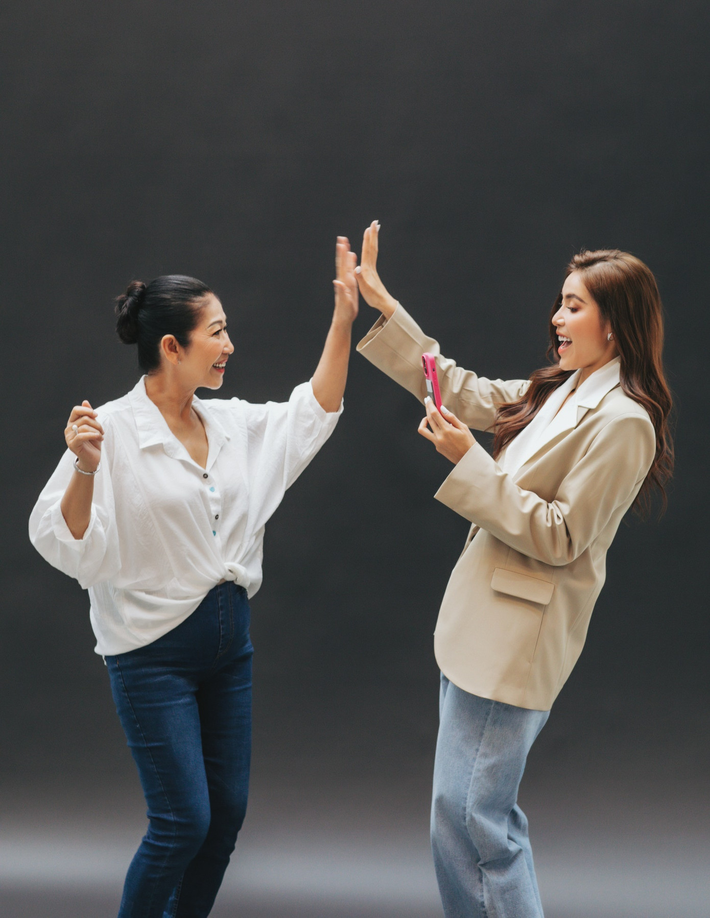 Trong bộ ảnh, Minh Tú và mẹ đồng điệu trong cách chọn trang phục. Hai mẹ con thoải mái tương tác trong những khoảnh khắc tinh nghịch. Chụp ảnh cùng mẹ, mới thấy Minh Tú và mẹ cô có nhiều nét rất giống nhau, từ ánh mắt, nụ cười…