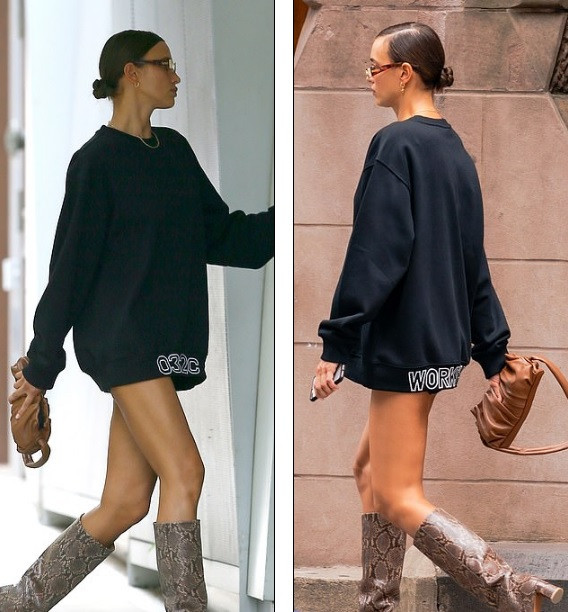 Siêu mẫu xứ bạch dương xuất hiện trên đường phố New York vào hôm qua với mốt "giấu quần", đi bốt họa tiết da rắn tôn chân dài gợi cảm.