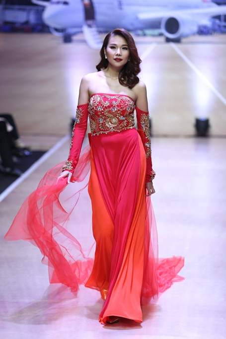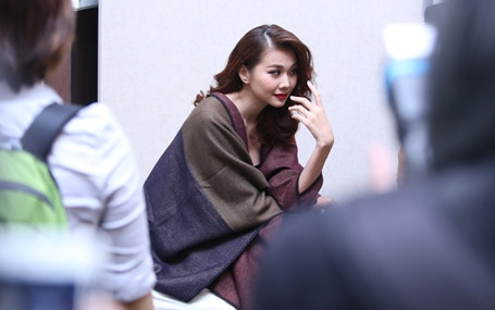Thanh Hằng nhận được lời khen ngợi bởi tinh thần làm việc chuyên nghiệp: luôn hỏi kỹ và tôn trọng ý đồ của nhà thiết kế trong việc làm tóc, make-up cho đến chọn giày.