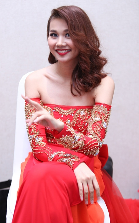 Siêu mẫu Thanh Hằng rạng rỡ trong một thiết kế áo dài cách tân sắc đỏ mang đậm sắc xuân. Chân dài nổi tiếng của làng mốt Việt khẳng định sẽ có lúc giới thiệu “anh ấy” tới công chúng.