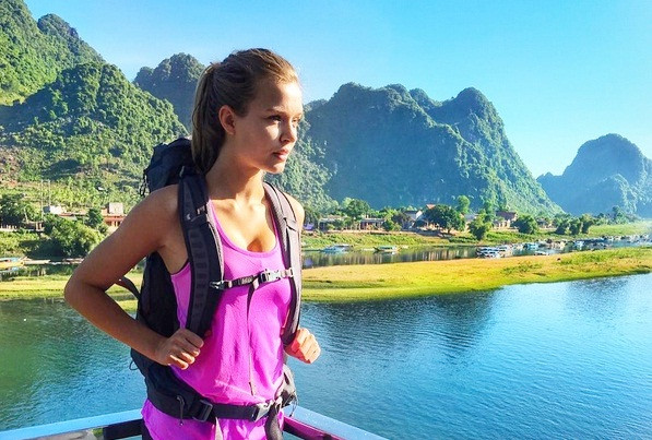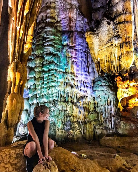 Trước đó, “chân dài” 23 tuổi đã ghé thăm động Phong Nha – Quảng Bình.