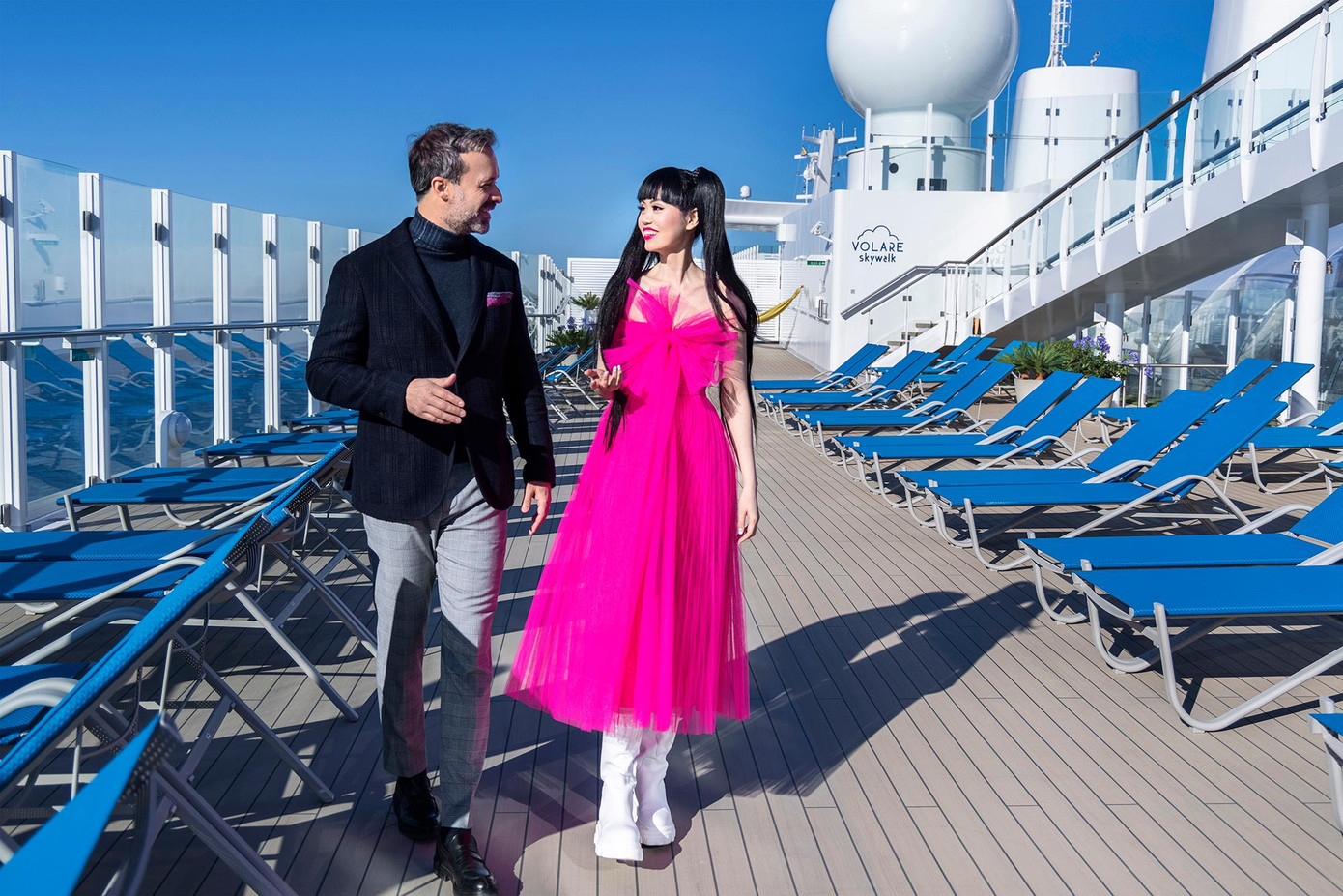 | Jessica Minh Anh và ngài Mario Zanetti - Chủ tịch của Costa Cruises thăm quan con tàu độc đáo. |