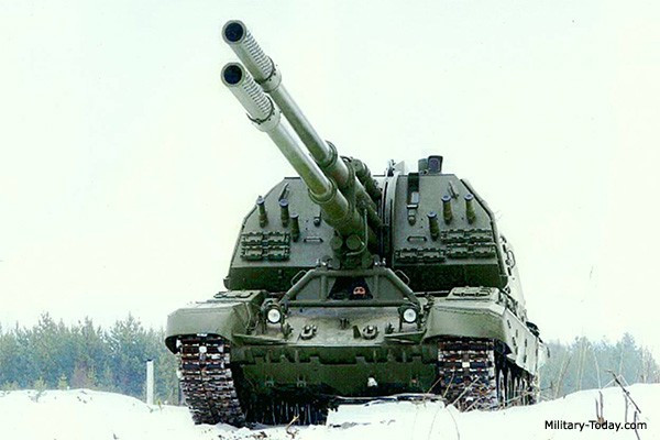 Theo Military-today, nguyên mẫu 2S35 sử dụng pháo chính 152 mm nòng kép trên khung gầm xe tăng chiến đấu chủ lực T-80. Tuy nhiên, các thử nghiệm cho thấy, giải pháp thiết kế nòng kép không thành công. Dự án bị hủy vào năm 2010. Ảnh: Military-today