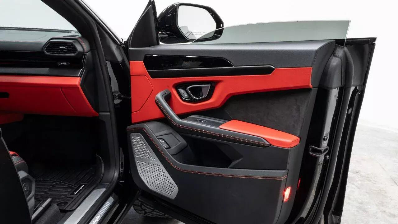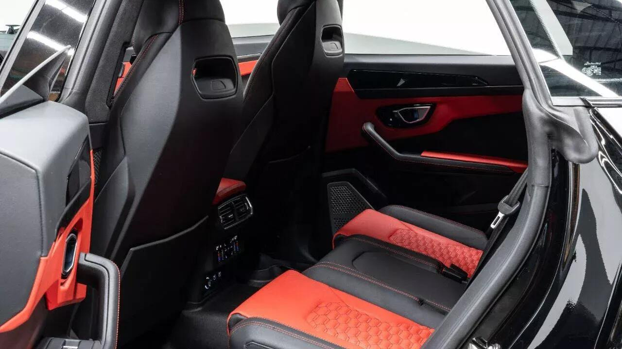 Bên trong cabin, chiếc Lamborghini Urus độ off-road được trang bị ghế thể thao bọc da phối màu đỏ và đen. Đây cũng là tông màu chủ đạo xuất hiện trên táp-lô và tapi cửa.