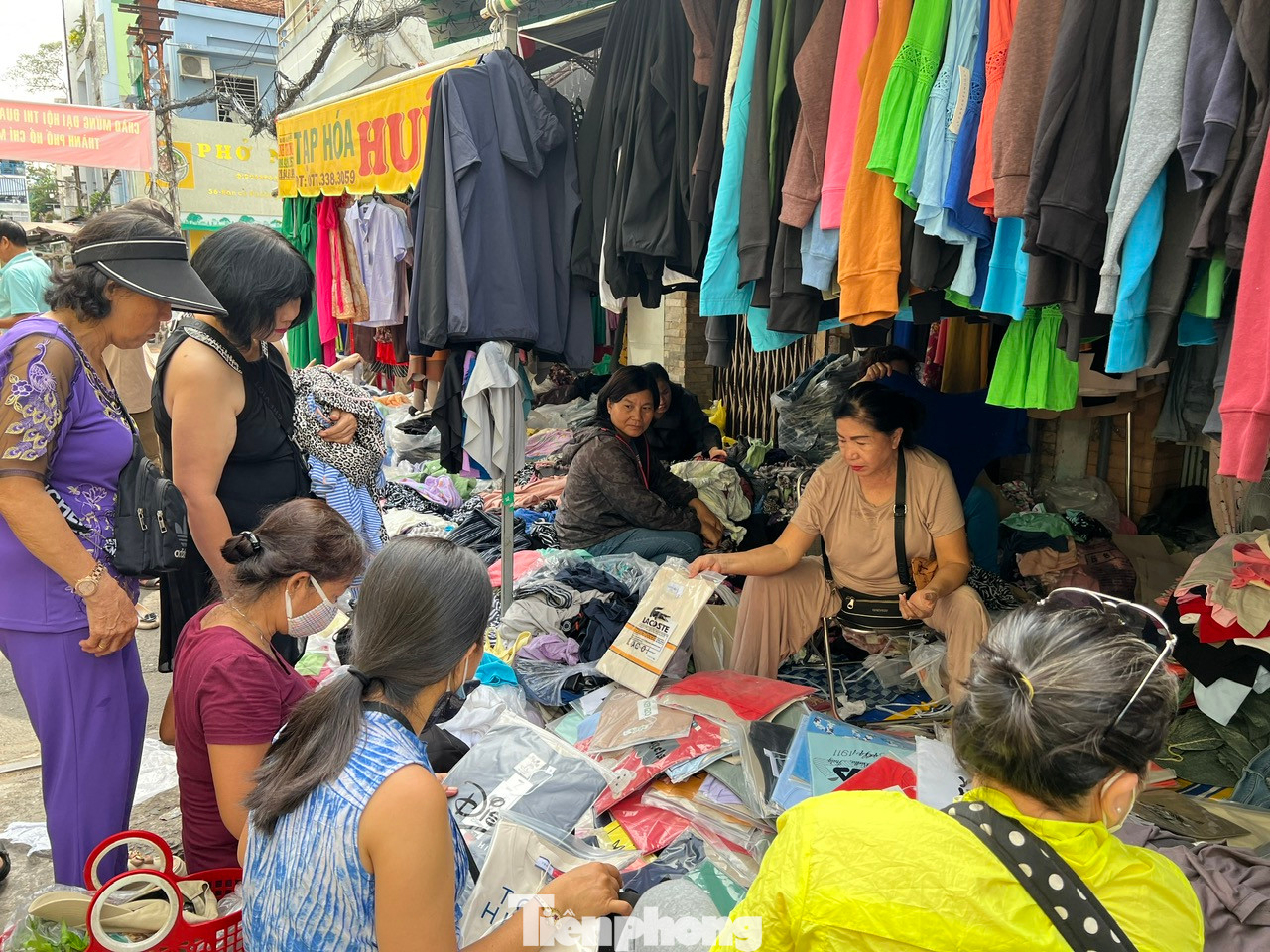 | Quần áo được chất đống trên tấm bạt trải ngay mặt đường, khách có thể ngồi hàng giờ liền để xới tung đống đồ, chọn những chiếc áo quần thấy vừa mắt. Người bán cũng không nề hà chuyện phụ khách tìm hàng ưng ý và luôn tay đảo trộn quần áo từ dưới lên để khách dễ dàng tìm kiếm. |