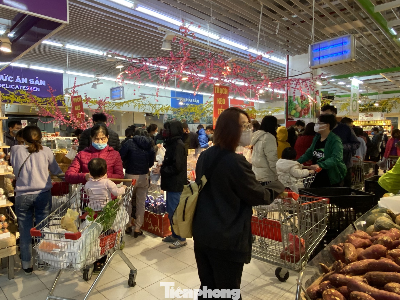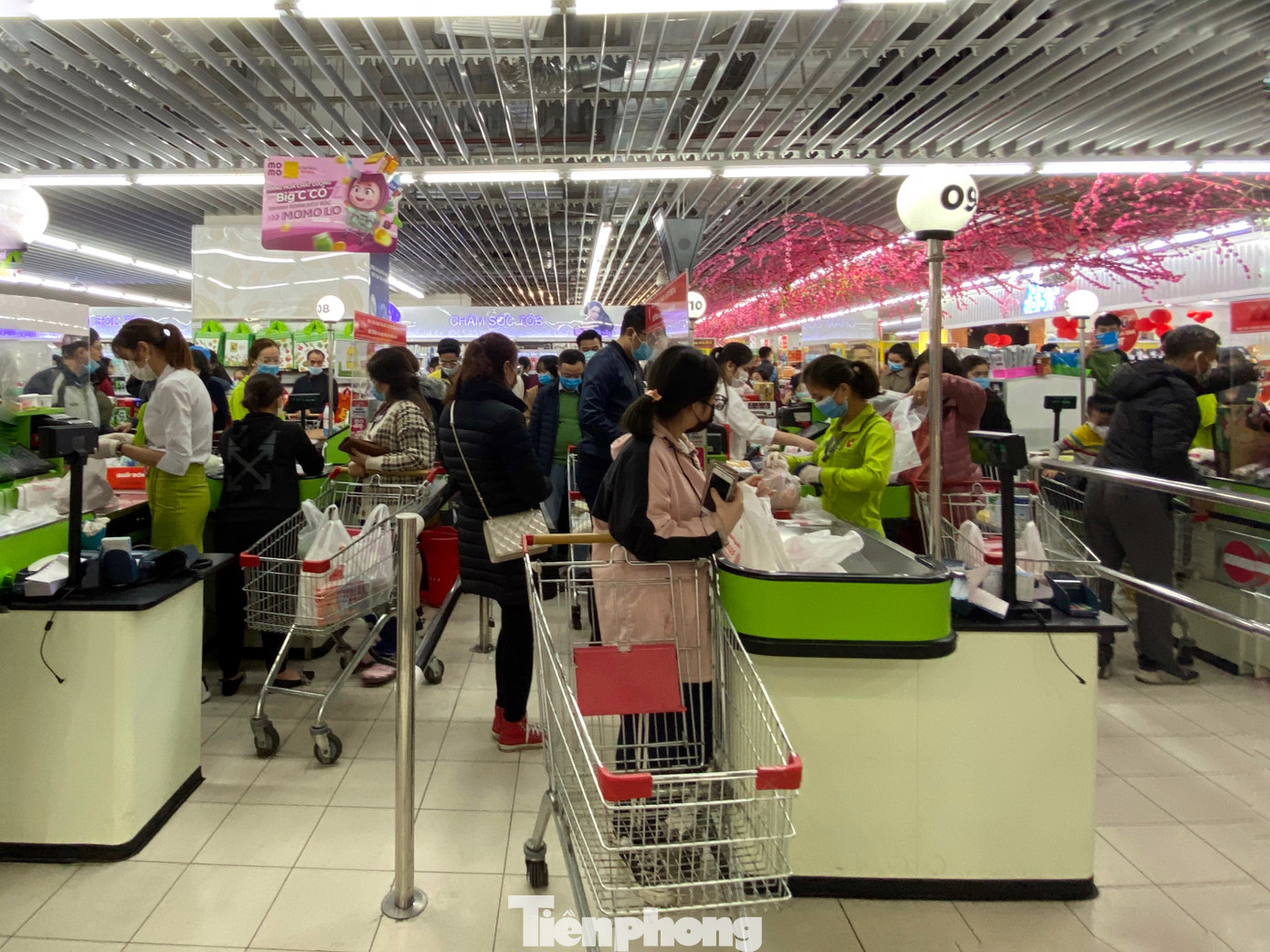 Kết thúc ngày làm việc cuối cùng, Hà Nội ngớt mưa, các siêu thị đông nghịt khách mua sắm. Nhiều quầy thực phẩm, bánh mứt kẹo, rượu bia, nước giải khát “tắc nghẽn”, khách buộc lòng chờ đợi, xếp hàng vào lựa đồ