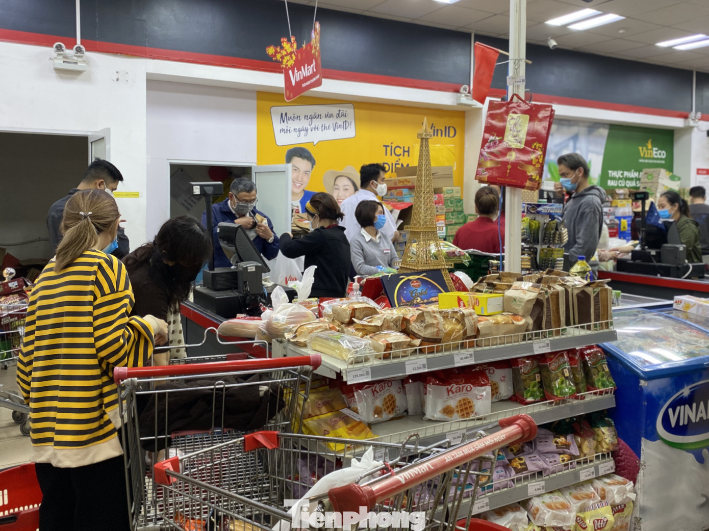 Hàng hoá đầy ắp trên kệ, siêu thị đông kín người nhưng không xảy ra tình trạng lộn xộn. Khách hàng từ tốn xếp hàng theo lượt, đeo khẩu trang, sát khuẩn tay trước khi vào mua sắm. Siêu thị từ chối phục vụ những vị khách không tuân thủ quy định phòng dịch