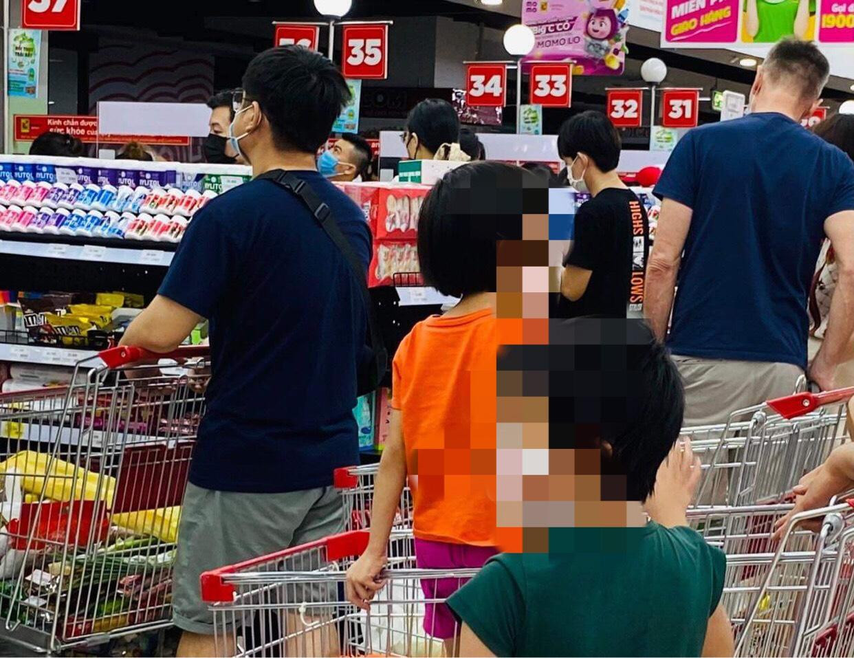 | Ghi nhận tại Big C Thăng Long, đặc biệt là các quầy thanh toán rất đông. Khách hàng cũng không để ý mấy đến việc giữ khoảng cách an toàn. Dường như nhiều người đã bắt đầu có tâm lý chủ quan? |