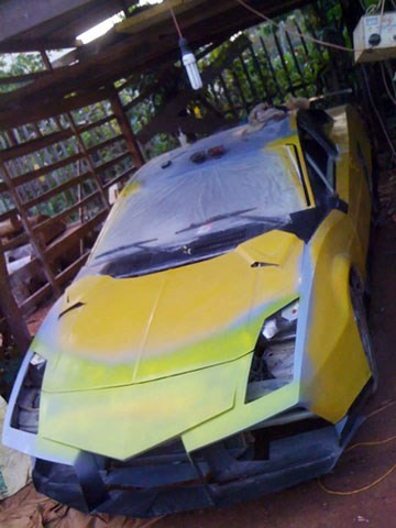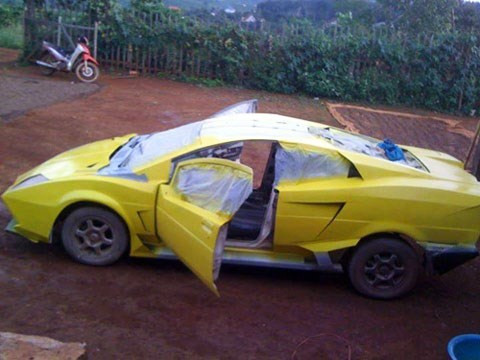 Trước đó vài ngày, thông tin và hình ảnh một chiếc Lamborghini Reventon tự chế tại Đắk Nông cũng lan truyền trên mạng. Chiếc Lamborghini “nhái” này vẫn đang trong quá trình hoàn thiện từ một Toyota Corolla cũ.