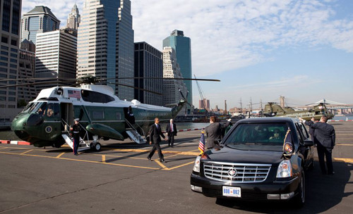 Mỗi chuyến công tác thường có 2 chiếc limousine The Beast đi cùng một hoặc 2 chiếc SUV Chevrolet Suburban làm nhiệm vụ liên lạc. Ảnh: Flickr.