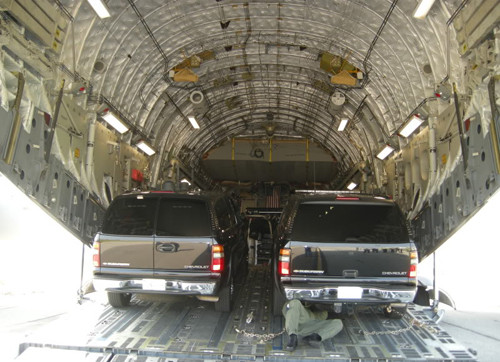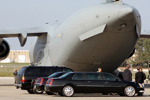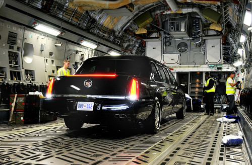 Chiếc limousine The Beast của tổng thống Obama do máy bay vận tải chuyển đến những nơi người đứng đầu Nhà Trắng công cán.