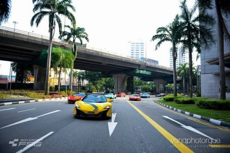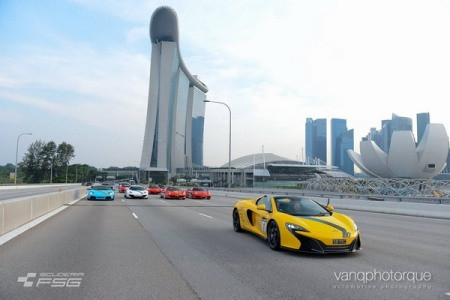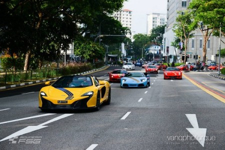 Chiếc McLaren 650 Spider màu vàng dẫn đầu đoàn