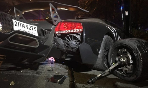 Hiện trường tai nạn trên một đoạn đường 3 làn đường, với chiếc Murcielago SV màu đen mang biển số Bangkok. Gần như toàn bộ đầu xe và một phần mạn trái bị phá hủy. Bánh sau bên trái cùng trục xe văng ra cách khoảng 500 m.
