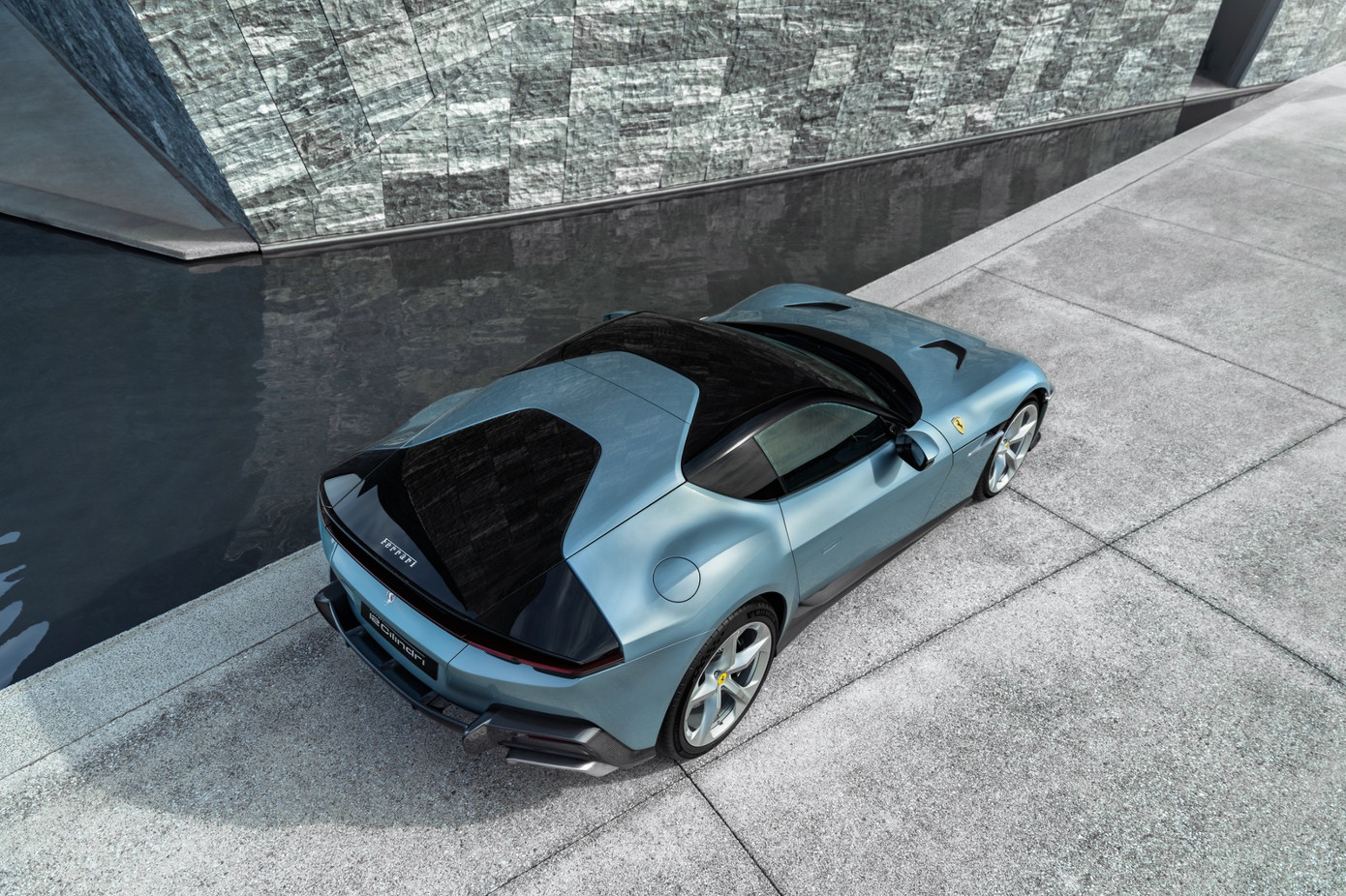 Ở phía sau, đuôi xe được vuốt đều xuống khoang hành lý với với diện tích bề mặt lớn được Ferrari gọi là thiết kế phong cách "delta". Tại đây tích hợp một hệ thống cánh gió ẩn sẽ được tự kích hoạt khi xe đạt vận tốc trên 60 km/h.