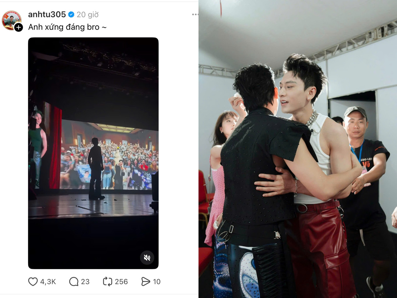Trên sân khấu, Anh Tú khiến khán giả “rụng tim” khi thoải mái khoác vai, ôm chặt ISAAC, thậm chí nở nụ cười bẽn lẽn như "mới biết yêu". Không dừng lại ở đó, nam ca sĩ còn đăng đoạn video bóng lưng của ISAAC khi nhìn lại hành trình nghệ thuật của mình cùng lời "shout-out" cho đàn anh: "Anh xứng đáng, bro".