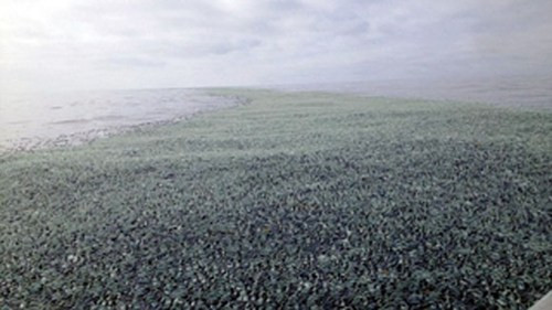 Theo các nhà khoa học, sinh vật biển này có tên khoa học là velella velella với chiều dài trung bình khoảng 10 cm và màu xanh nhạt. Hình dáng kỳ lạ của chúng khiến nhiều khách du lịch tò mò.