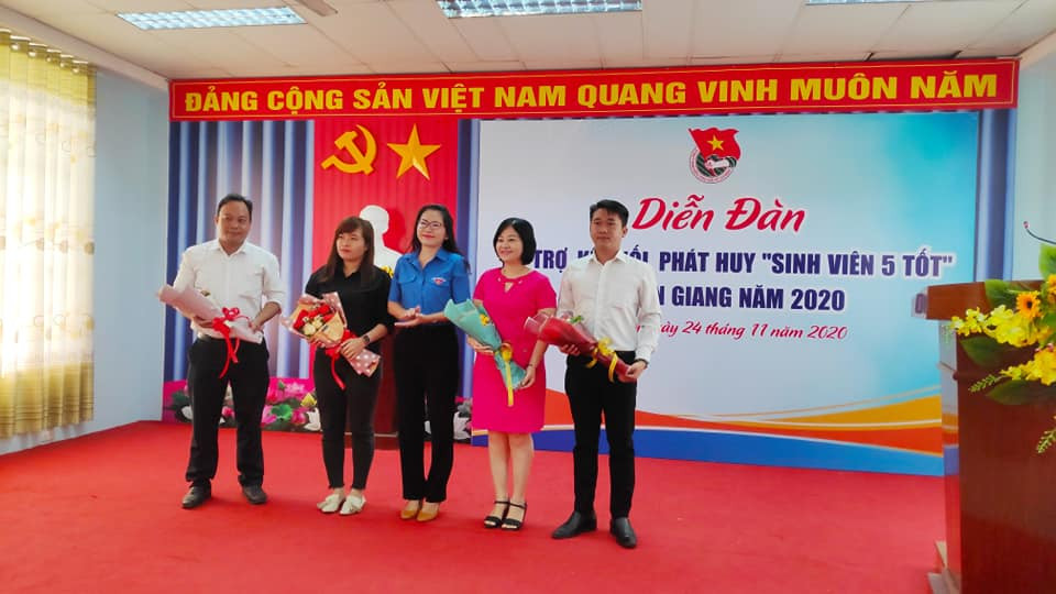 Chị Võ Thị Thủy Tiên, Phó Bí thư Tỉnh đoàn An Giang phát biểu Chị Võ Thị Thủy Tiên, Phó Bí thư Tỉnh đoàn An Giang cho biết, thời gian qua, các trường cao đẳng, đại học trên địa bàn tỉnh đã rất nỗ lực trong công tác tuyên truyền, vận động sinh viên tích cực học tập và rèn luyện để đạt danh hiệu cấp trường, cấp tỉnh và đề cử xét cấp trung ương. Bên cạnh đó, một trong những nội dung đang được đẩy mạnh để thực hiện là tổ chức thêm các hoạt động để tạo sự hỗ trợ, kết nối, phát huy vai trò của Sinh viên 5 tốt sau tuyên dương. "Để “Sinh viên 5 tốt” không phải là một danh hiệu chỉ có giá trị trên giấy chứng nhận, mà phải thật sự có đóng góp về trí tuệ lẫn sức lực của mình cho sự phát triển của quê hương đất nước, đó cũng chính là mục đích cao đẹp nhất mà phong trào đề ra và cố gắng hướng đến", chị Tiên nói.