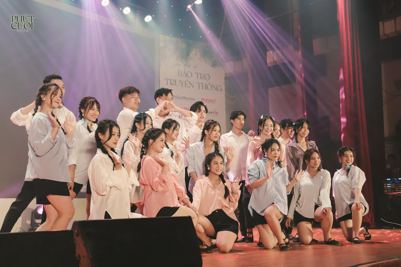 Dù là sự kiện tri ân nhưng sân khấu Phút Cuối 2022 - Bước qua mùa hạ không chỉ tập trung vào bầu không khí chia tay bồi hồi, lắng đọng. Bên cạnh đó, các sinh viên trường Báo còn “hâm nóng” đêm nhạc hội với những bài hát, điệu nhảy đầy lôi cuốn và đam mê. Thậm chí, nhiều tiết mục còn khiến khán giả thích thú bởi thần thái và cách thể hiện đều không thua kém nghệ sĩ chuyên nghiệp.