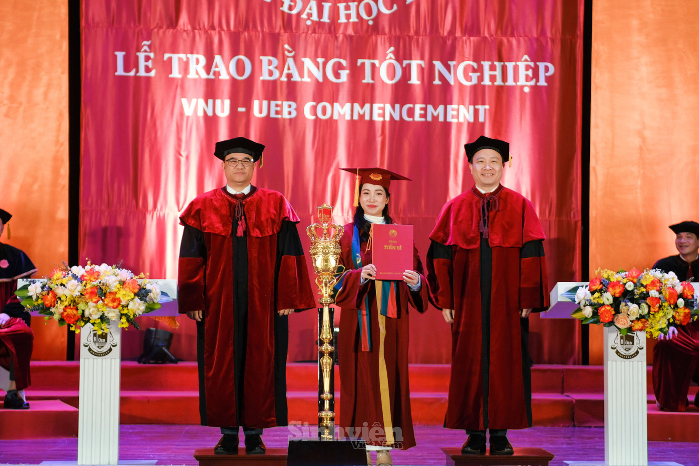 PGS. TS Nguyễn Trúc Lê chia sẻ: “Giờ đây, thầy cô có thể khẳng định rằng chúng ta đã thành công, chúng ta đã chứng minh được giá trị và sức mạnh của từng cá nhân cũng như của cả tập thể Trường Đại học Kinh tế - Đại học Quốc gia Hà Nội. Sau ngày hôm nay, dù các bạn sẽ rời mái trường, nhưng để tiếp tục thành công trên con đường tương lai, việc giữ lửa sức mạnh truyền thống và giá trị tinh thần của Trường chúng ta mang một ý nghĩa vô cùng quan trọng.