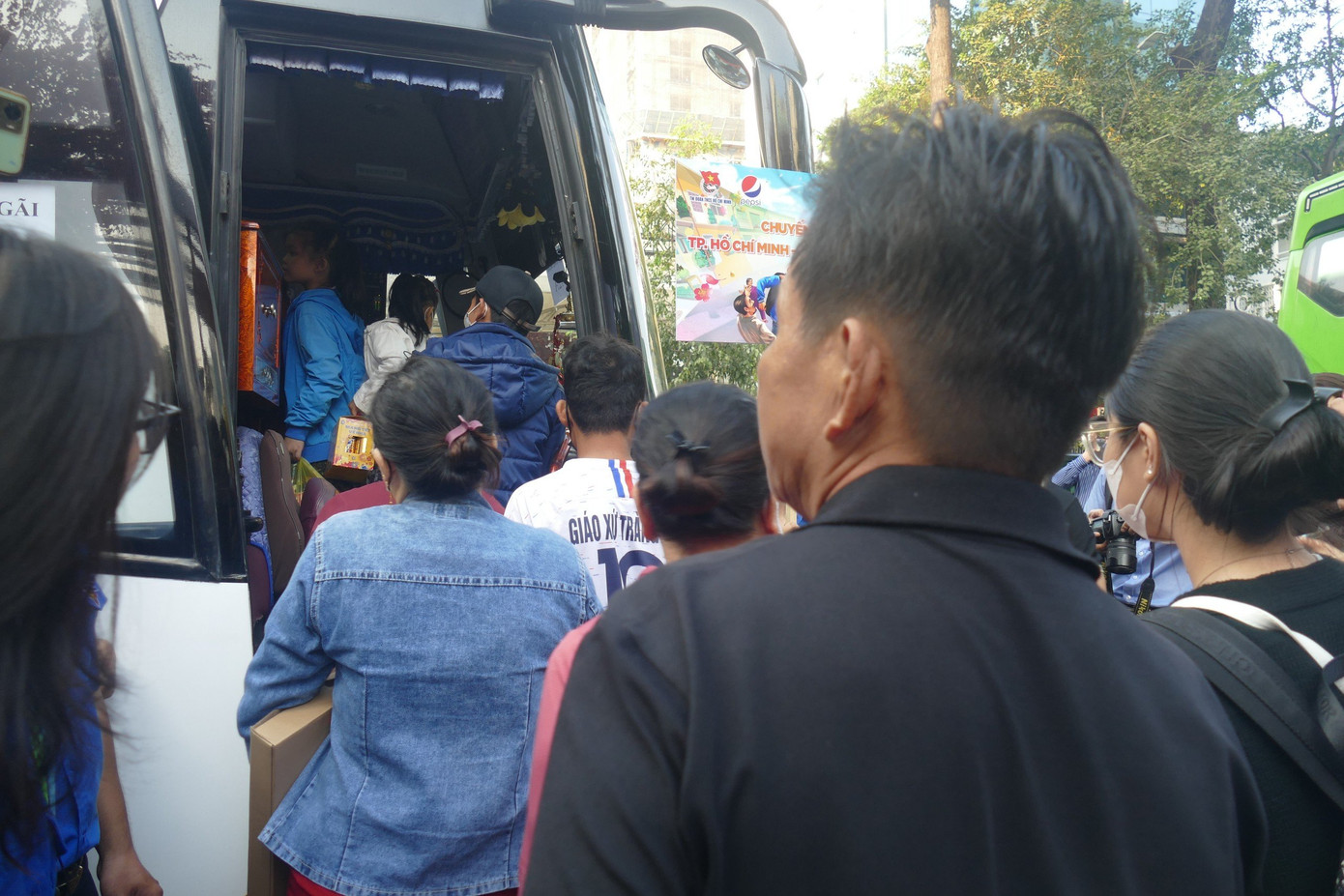 | Ban Tổ chức chương trình tặng vé cho sinh viên, thanh niên công nhân, người lao động về quê đón Tết. |