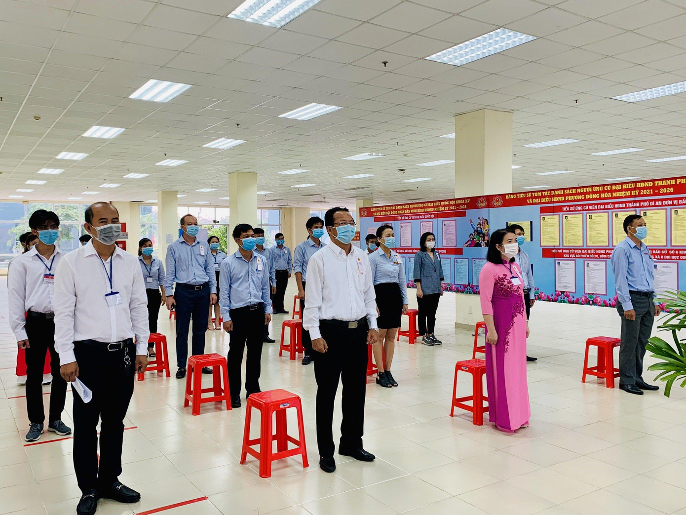 Diễn ra trong thời điểm dịch bệnh COVID-19 đang phức tạp, công tác phòng dịch đảm bảo an toàn được Ủy ban bầu cử Phường Bình Hòa và Trung tâm Quản lý KTX ĐHQG TP. HCM thực hiện vô cùng nghiêm ngặt.