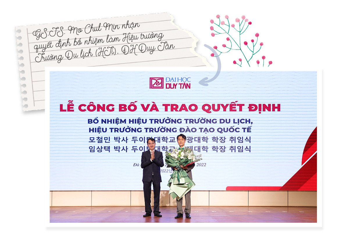 Ấn tượng về sự chân thành, thông minh của sinh viên Việt Nam cùng chiến lược phát triển của ĐH Duy Tân, GS.TS. Mo Chul Min - Nguyên Thứ trưởng Bộ Văn hóa, Thể thao & Du lịch Hàn Quốc, đã nhận lời mời về làm Hiệu trưởng Trường Du lịch (HTi), thuộc ĐH Duy Tân.