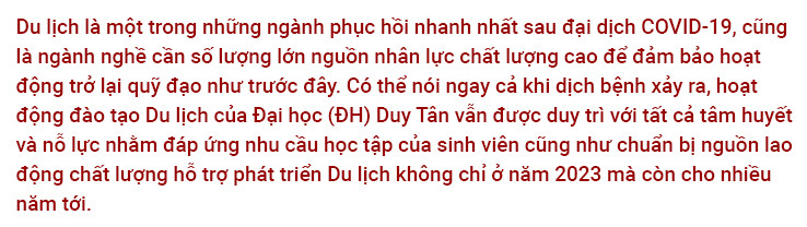 Sinh viên ngành Du lịch đang theo học tại Trường Du lịch (HTi), ĐH Duy Tân đang thực sự yên tâm về chất lượng khi mới đây, ngày 8/7/2022, Tổ chức Du lịch Thế giới (của Liên Hiệp Quốc) - UNWTO đã công nhận 2 chương trình đào tạo: