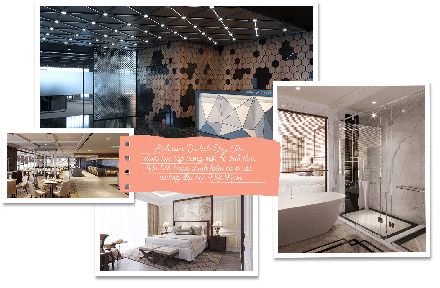 Trường Du lịch (HTi), ĐH Duy Tân đã xây dựng được một hệ sinh thái hoàn chỉnh, đa dạng cho các chuyên ngành đào tạo về Du lịch của trường như: Khách sạn thực hành 5 sao, Trung tâm Hội nghị, Công ty Lữ hành UTravel, quán cà phê,… Từ môi trường này, sinh viên Duy Tân luôn có cơ hội thực hành, nâng cao tay nghề để có thể tự tin làm việc trong môi trường thực tế ngay khi ra trường.