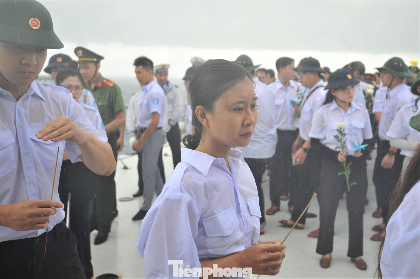 Mặc mưa thấm vào người rét run, gió vẫn thổi ào ào, nhưng sau nghi lễ, các bạn trẻ đều nán lại bên mạn tàu nhìn theo những bông hoa, cánh hạc, lễ vật cùng cầu nguyện: “Mong linh hồn các anh được yên nghỉ”. Tổ quốc mãi ghi ơn các anh. Với lý tưởng cao đẹp “Không có gì quý hơn độc lập, tự do”, vì chủ quyền biển đảo thiêng liêng của Tổ quốc, các anh đã sống và chiến đấu dũng cảm, bất khuất, trở thành những tượng đài bất tử, tấm gương lớn để thế hệ trẻ noi theo.