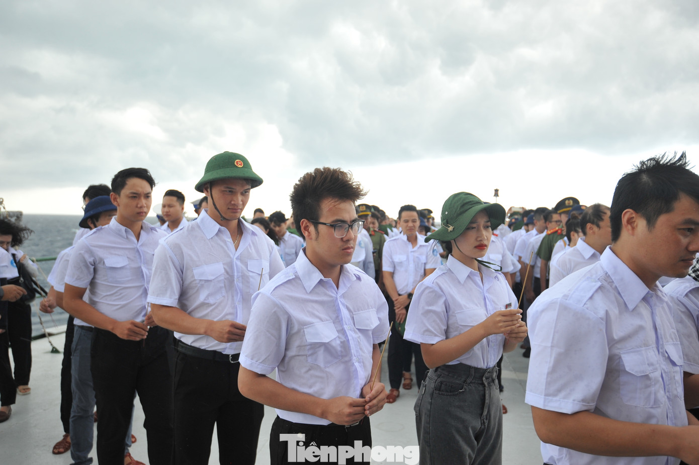 Sau lễ dâng hương, đoàn công tác đã thực hiện nghi lễ thả vòng hoa, lễ vật xuống biển cả mênh mông tưởng nhớ các Anh hùng liệt sĩ. Dưới cơn mưa nặng hạt, các đại biểu tay cầm hoa cúc, tay cầm cánh hạc giấy mang màu xanh hy vọng đặc trưng của Hội Sinh viên Việt Nam lần lượt thả xuống biển khơi gửi về các anh. Những cánh hạc giấy này được chính các bạn sinh viên xếp ngay trên chuyến hải trình, trong những ngày lênh đênh giữa sóng gió biển khơi.