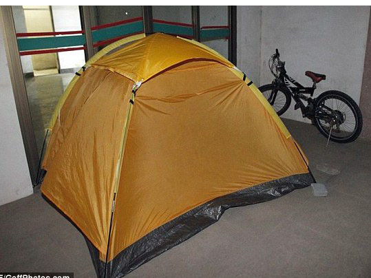 | Sinh viên dựng cả lều trước cửa lớp học để có chỗ ngồi tốt vào hôm sau. |