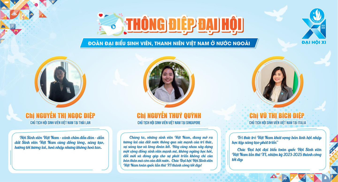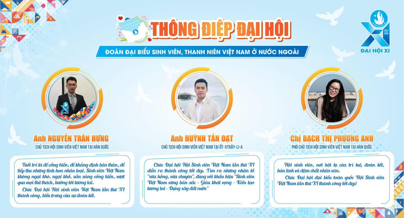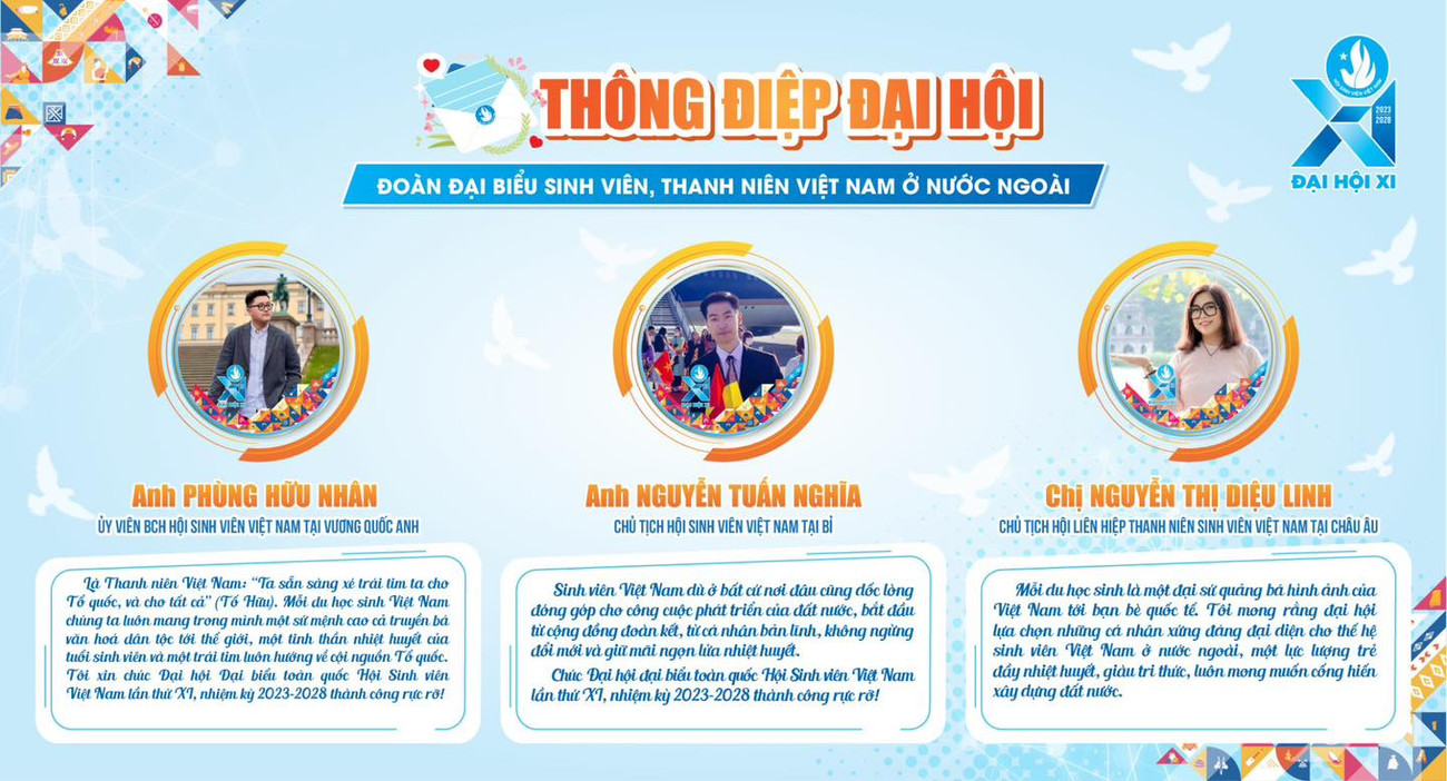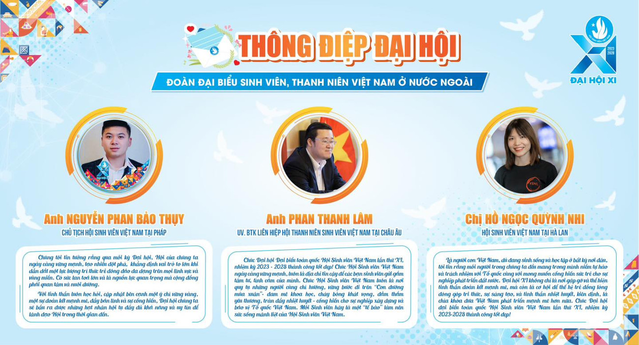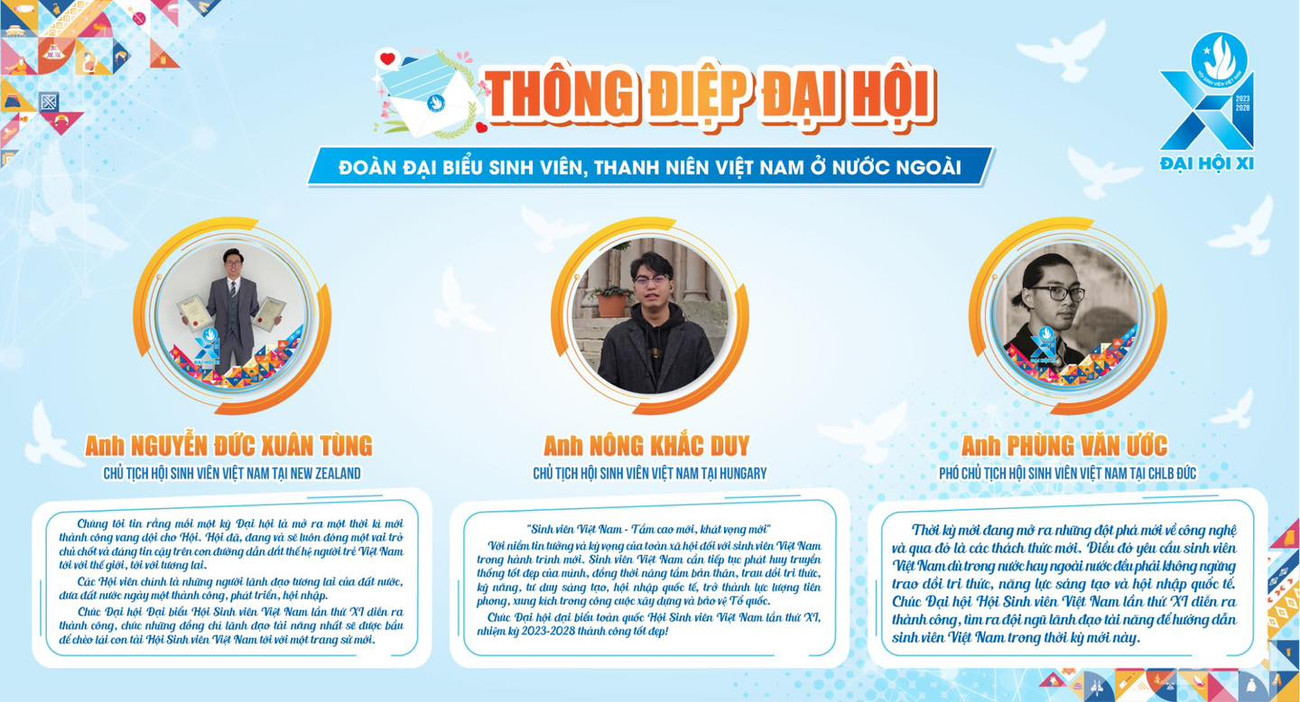 SVO - 15 đại biểu ngoài nước đại diện cho thanh niên, sinh viên Việt Nam ở nước ngoài gửi thông điệp gửi tới Đại hội Đại biểu Hội Sinh viên Việt Nam lần thứ XI, nhiệm kỳ 2023 - 2028.