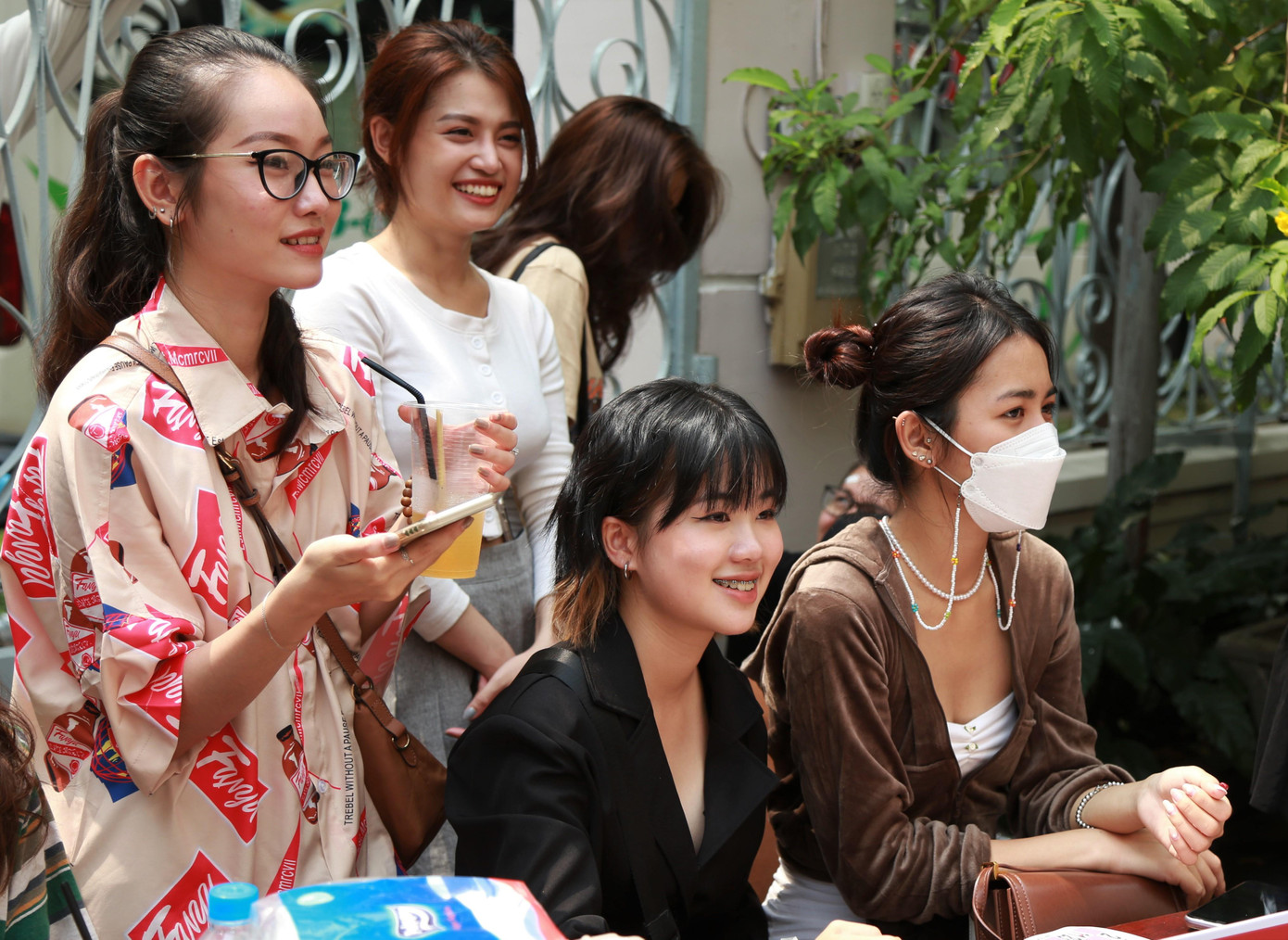 Các bạn trẻ tranh thủ "check-in" kỷ niệm với ngày hội