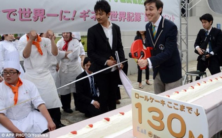 Chiếc bánh dài hơn 130 mét này đã đánh bại chiếc bánh dài 115,09 mét trước đó cũng được làm ở Nhật Bản vào năm 2011.