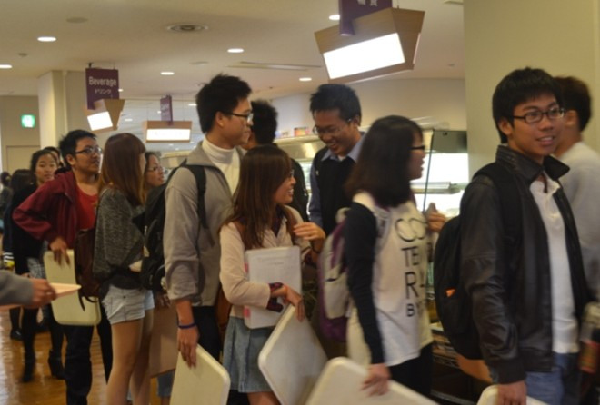Cứ mỗi phần ăn bán được, các bạn lại thu về 40 Yen cho đồng bào miền Trung. Hoạt động thuộc dự án Lunch Relief một nhóm du học sinh Việt Nam tổ chức. Trường Ritsumeikan Asia Pacific University hiện có khoảng 300 sinh viên Việt Nam.