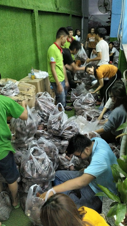 Khuya 4/3, hơn 3 tấn khoai lang của người dân huyện Phú Thiện, tỉnh Gia Lai đã về đến trường đại học Công nghiệp Thực phẩm TPHCM. Hàng chục sinh viên túc trực sẵn đã nhanh tay chuyển xuống, cân gói cẩn thận để kịp bán giúp nông dân vào sáng hôm sau.