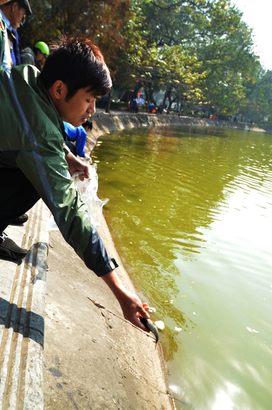 Ngay cả Hồ Hoàn Kiếm (Hà Hội) túi nilon cũng bị người dân vứt xuống sau khi thả cá.