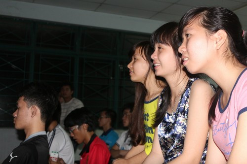 Từ 1 giờ 30 phút 13/6, sinh viên KTX ĐHQG TP.HCM đã tập trung đón chờ trận khai mạc.