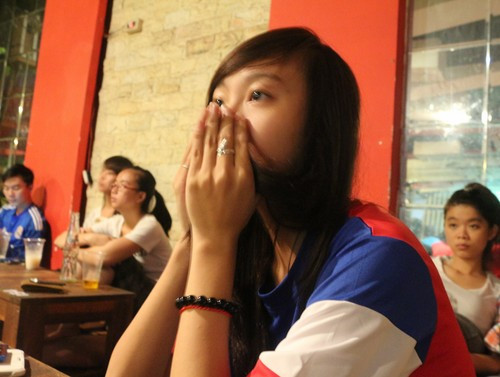 Các cổ động viên sinh viên nữ cũng rất “máu” xem World Cup nửa đêm ở KTX