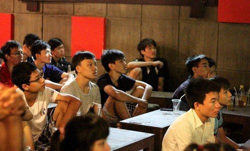 Các sinh viên xem bóng đá tại một quán cà phê trong làng đại học