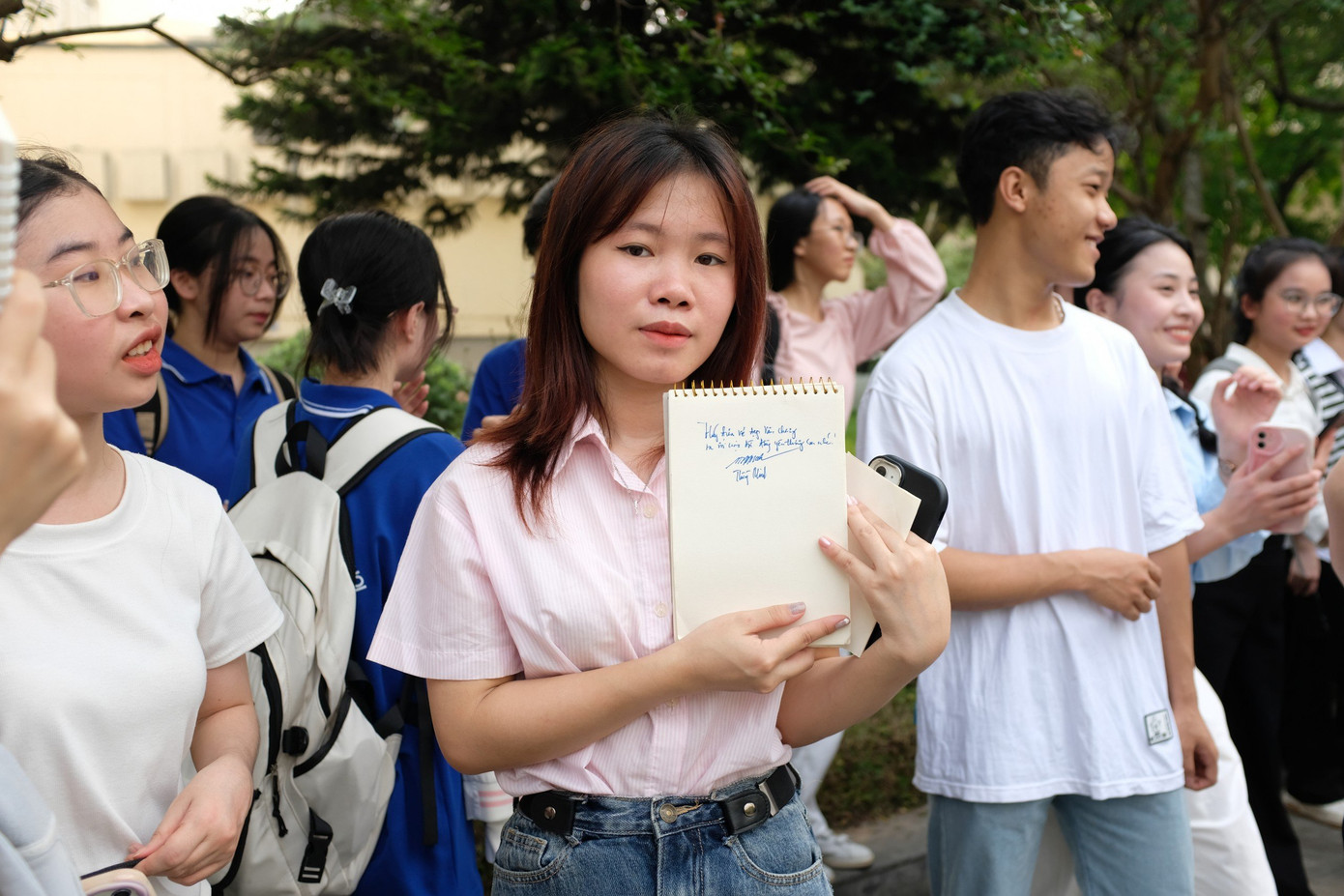 | Hàng trăm sinh viên xếp hàng dài tại sân trường. |