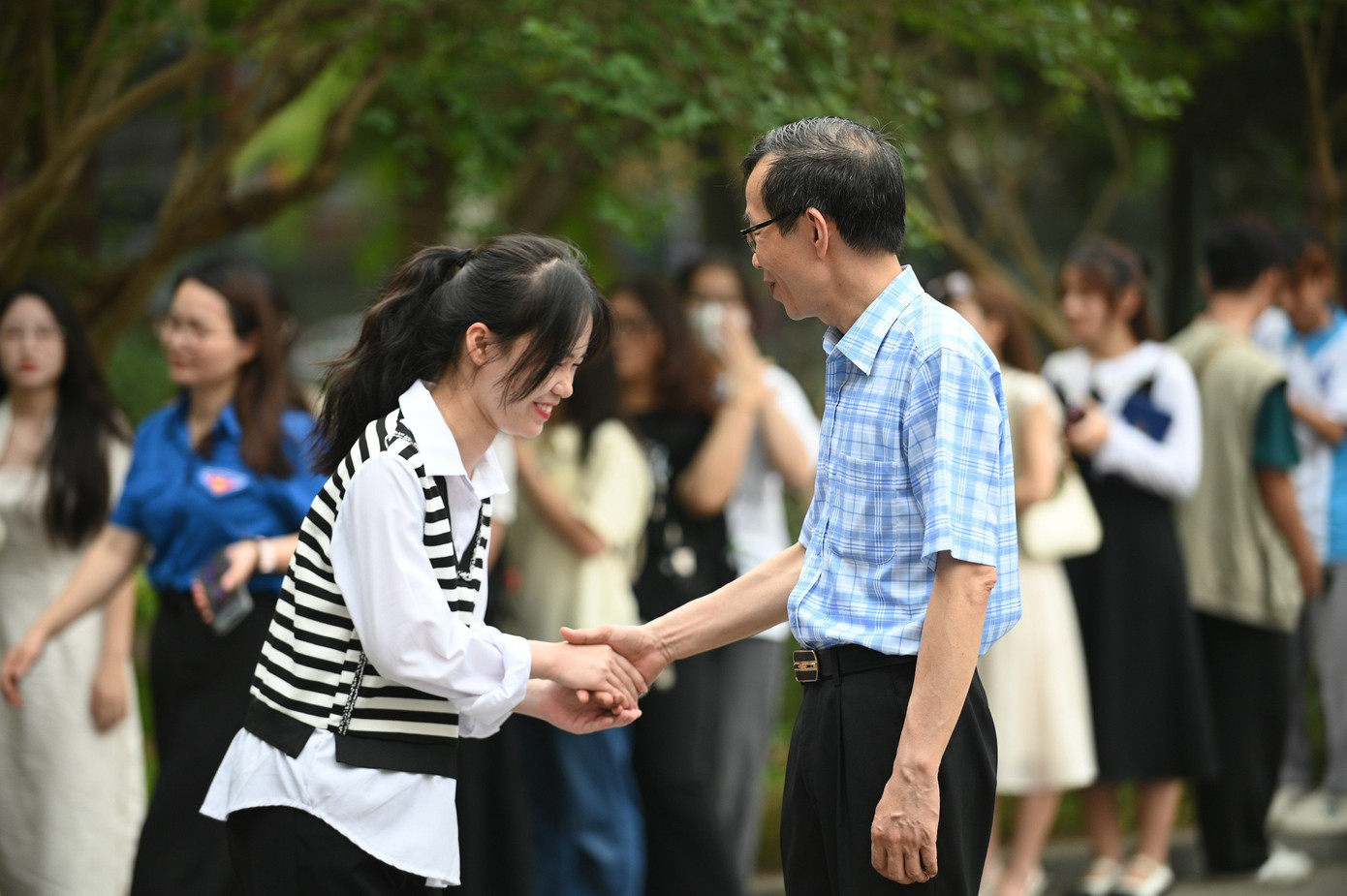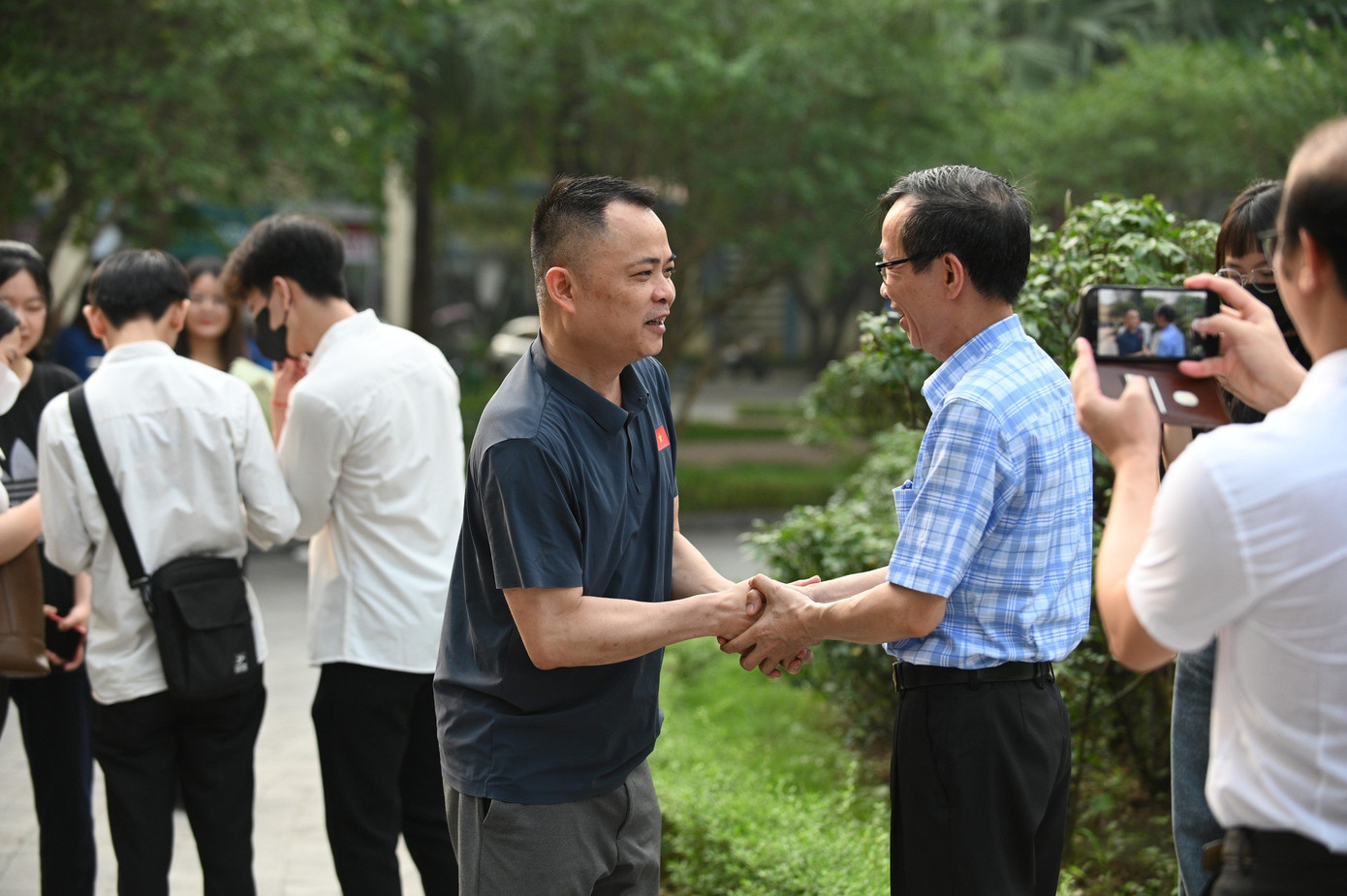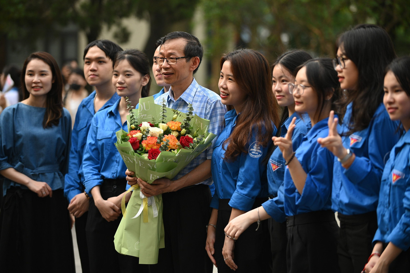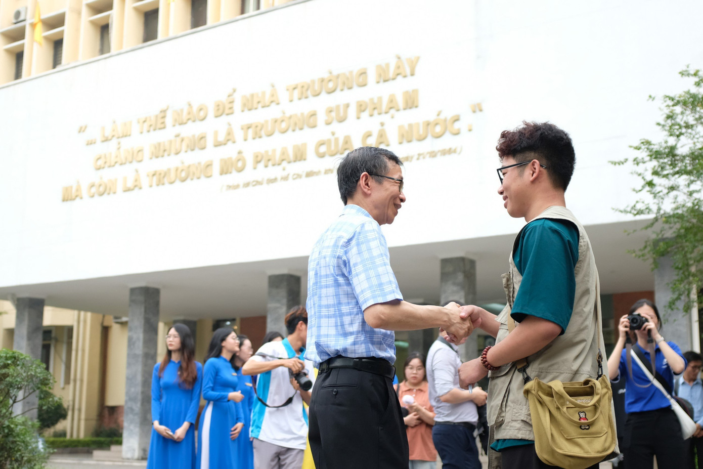 | Ngay từ sáng sớm ngày 26/4/2024, hàng trăm sinh viên trường Đại học Sư phạm Hà Nội chờ bắt tay, chụp ảnh chia tay Thầy Hiệu trưởng GS.TS Nguyễn Văn Minh. |