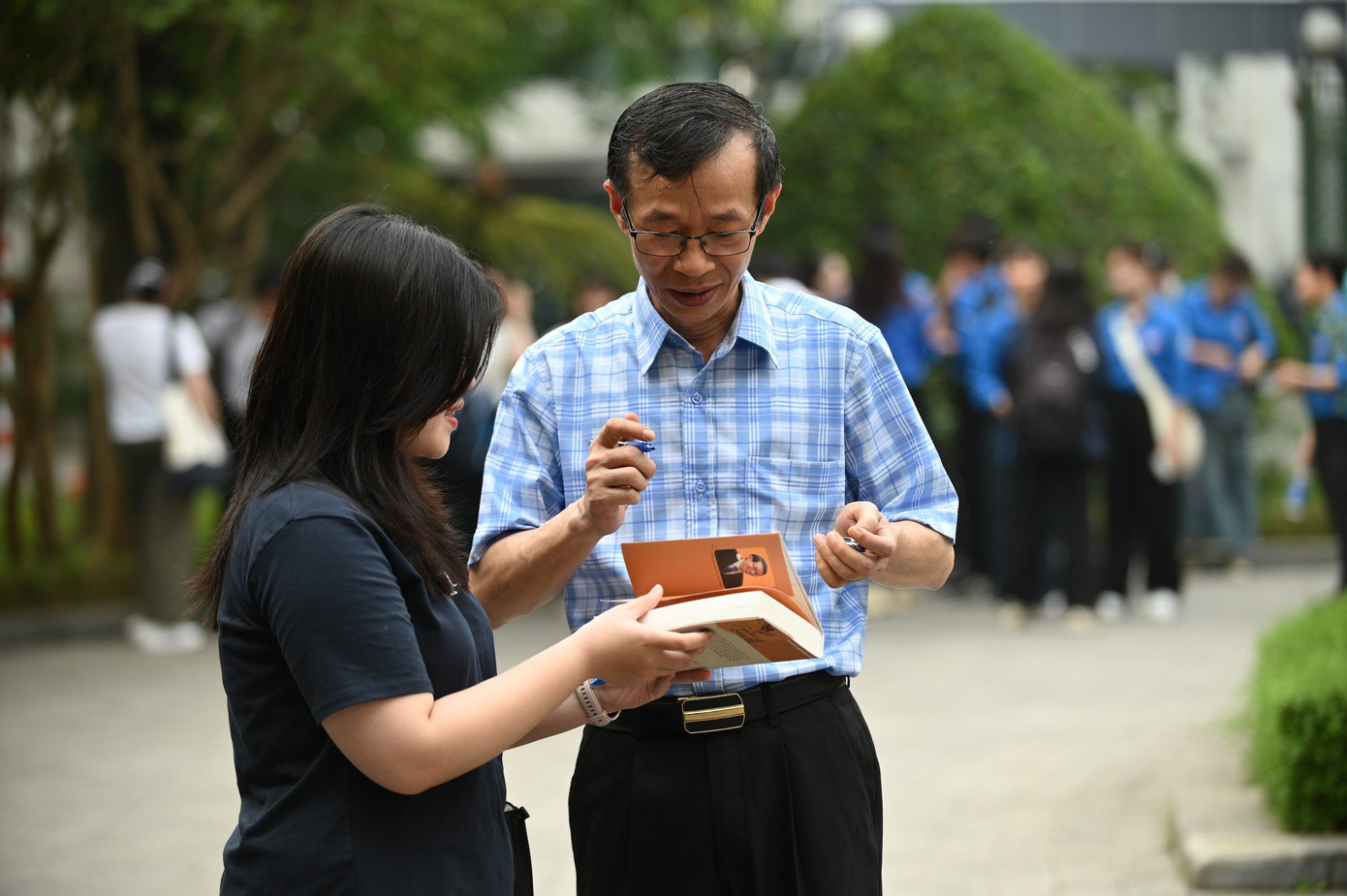 | Các bạn sinh viên đã cố gắng chờ để xin chữ ký cùng những lời nhắn nhủ từ Thầy Hiệu trưởng GS.TS Nguyễn Văn Minh. |