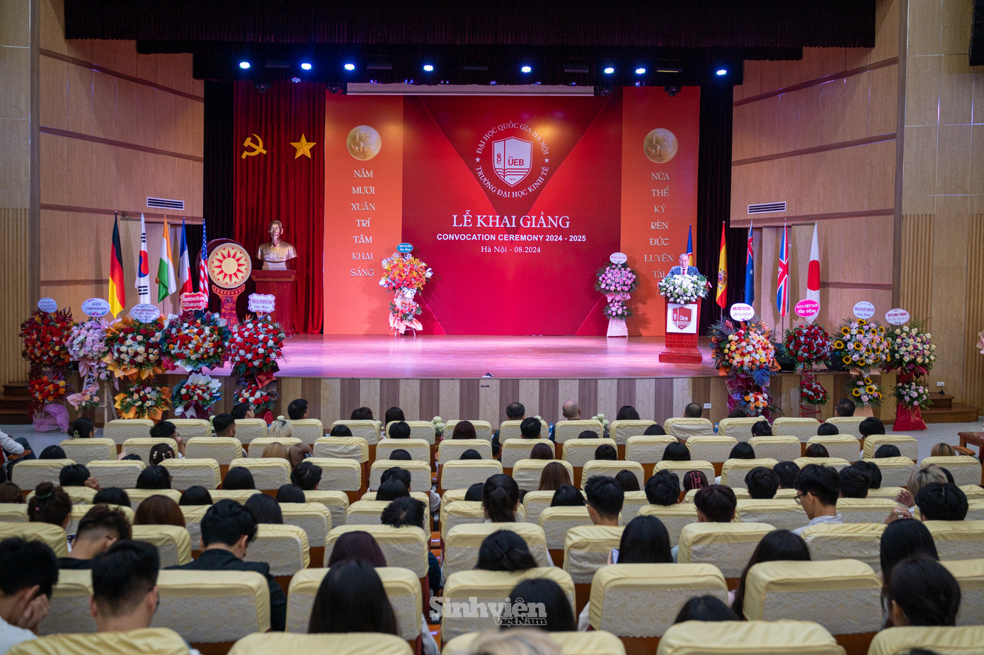 | Tân sinh viên UEB hào hứng trong lễ khai giảng đầu tiên của 'đời' sinh viên. |
