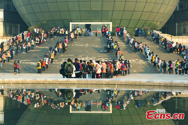 Cảnh tượng được chụp trước cửa thư viện nhiều trường đại học cho thấy những hàng người dài tới cả trăm mét. Nhiều sinh viên phải dậy từ rất sớm, đứng xếp hàng trước giờ mở cửa với hi vọng có một chỗ ngồi ấm áp trong thư viện.