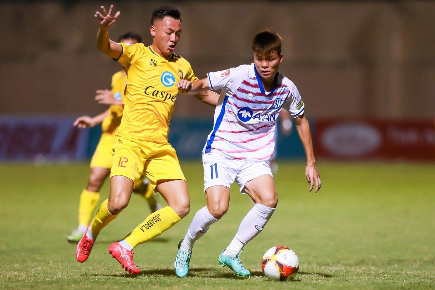 52': Mai Sỹ Hoàng lập cùng với pha dứt điểm gọn gàng găm bóng vào góc lưới. Đội chủ nhà từ chỗ gặp khó này đang tiến gần tới chiến thắng.